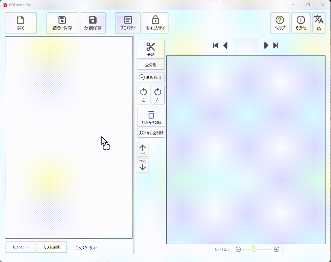 「PDForsell」はページ編集が楽!PDForsellは、編集が簡単。リスト上で新しいファイルやページの挿入や回転ができる。ファイルの追加はリストへのドラッグで可能リストではファイルごと色分けされて表示されるのでわかりやすい左側のリストで並び順や回転を操作できますページの回転もプレビュー見ながら確認できる編集に関するボタンは真ん中に集まっており操作がしやすいPDForsellを見る他の記事PDF編集の決定版「PDForsell」のご紹介「PDForsell」はファイルの中身を見ながら編集できる!「PDForsell」はページ編集が楽!「PDForsell」は保存がいろいろ!「PDForsell」は文書のプロパティを設定可能「PDForsell」はPDFファイルのセキュリティ設定が可能
